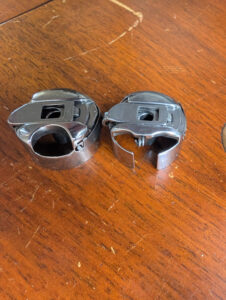 Now, if your bobbin case doesn’t have that bump, this style of bobbin not going to fit in at all, instead the 20u bobbin case relies on a different set of bumps to keep it in place: See that ditto lookin’ face in the left pic? That’s what keeps the bobbin case from spinning freely, and the right pic is the shot of those bumps doing their jobs. The good news is that SOME 306k, 306w, and 206 machines come from the factory with 20u compatible shuttles, but if not, you’re gonna have to go to ebay and buy one.