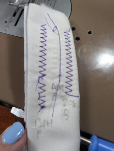 Also, what happens if you put a 130h needle in a 306 machine? Like why is Jamie Infodumping? Zig Zag! If the zig don’t zag, don’t bother. Notice how only one of those stitches hits every zig and every zag? That’s the 206 needle (right first pic, left second). THen the middle line with a bunch of punch holes was me trying to get the DBX1 to catch the thread AT ALL on the right side, and the 130h did okay but the tension was wonky and it missed stitches as the thread pinching at a key point the stitch cycle happened.